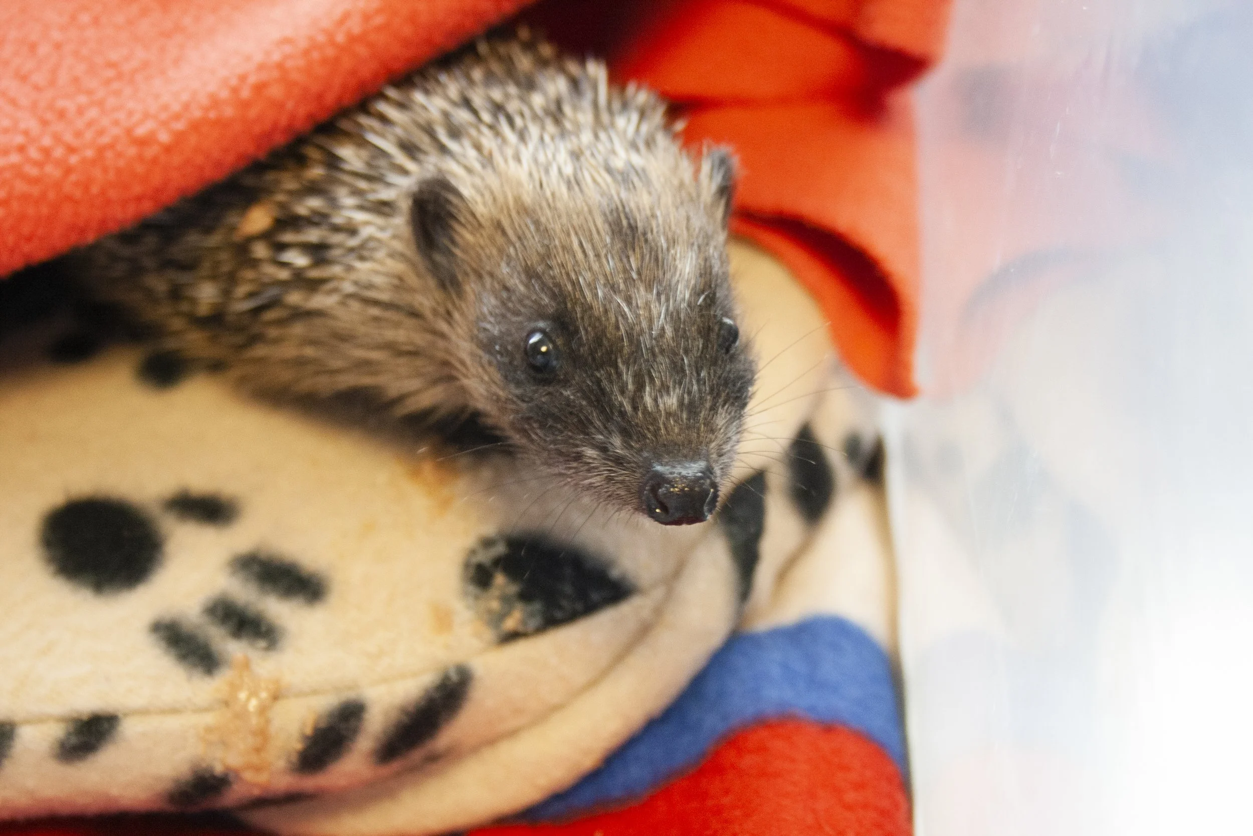 Triggered by a number of consecutive cold days (around 5C or less), hibernation typically occurs from November to April and allows them to ‘skip’ the cold months which are often lacking in natural food. It is important they are a good weight (ideally 600g+) before hibernating as during the process they rely on energy from their fat stores. It is not just a deep sleep - their metabolism slows down, their body temperature drops from 35C to around 10C, they go from having around 190 heartbeats per minute to only around 20 per minute, and they only take about one breath every 2 minutes. During the hibernation months, it is quite normal for a hedgehog to occasionally ‘wake up’, top-up on food and water, before making another nest to restart hibernation
